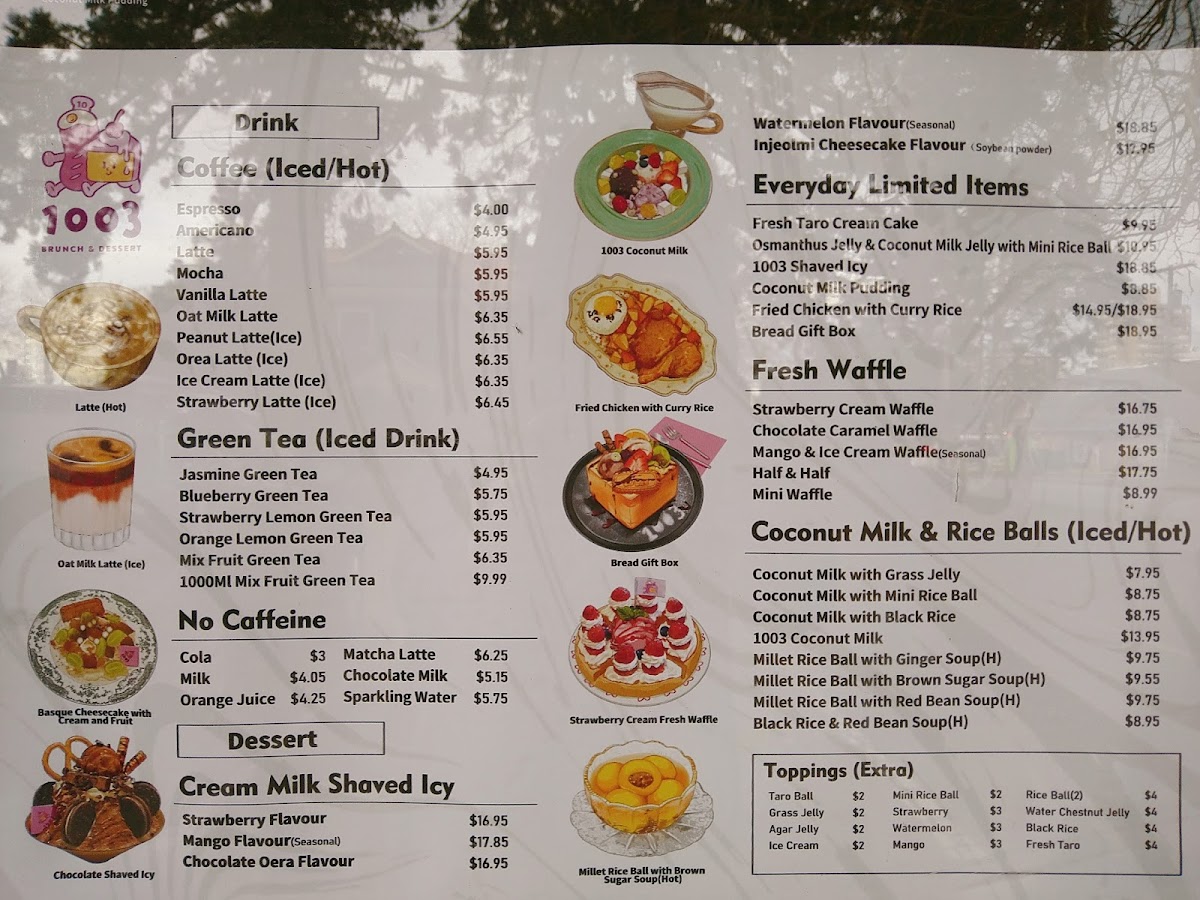 Share Plates: Shareable dishes available include items like Waffle Garden, Strawberry Meeting, Coco Chocolate, a 1003 Gift Box, and Chicken Fingers. These plates are designed for communal dining or light snacking.